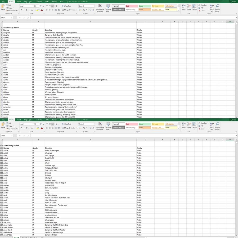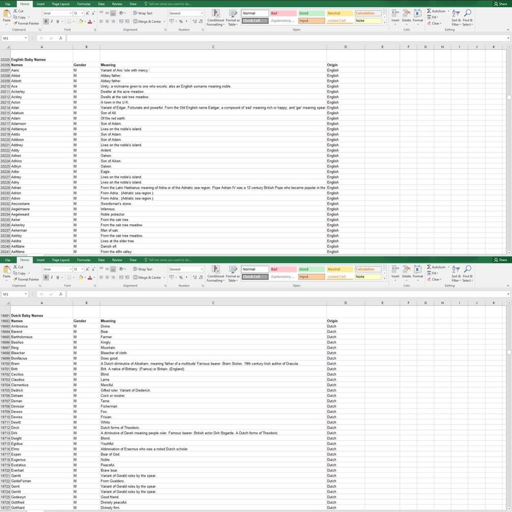 80000+ Baby Names Database - Baby Names Excel Spreadsheet